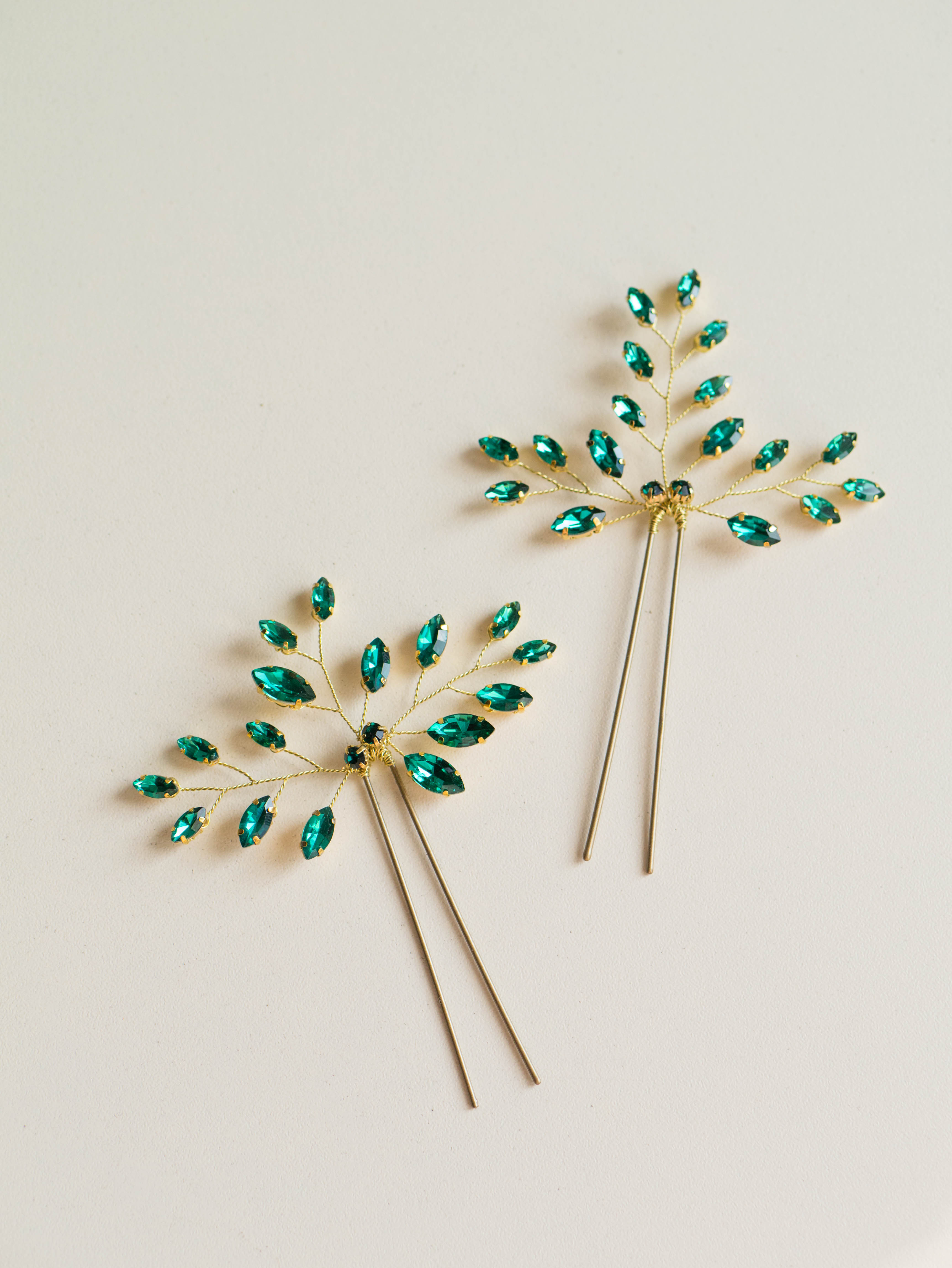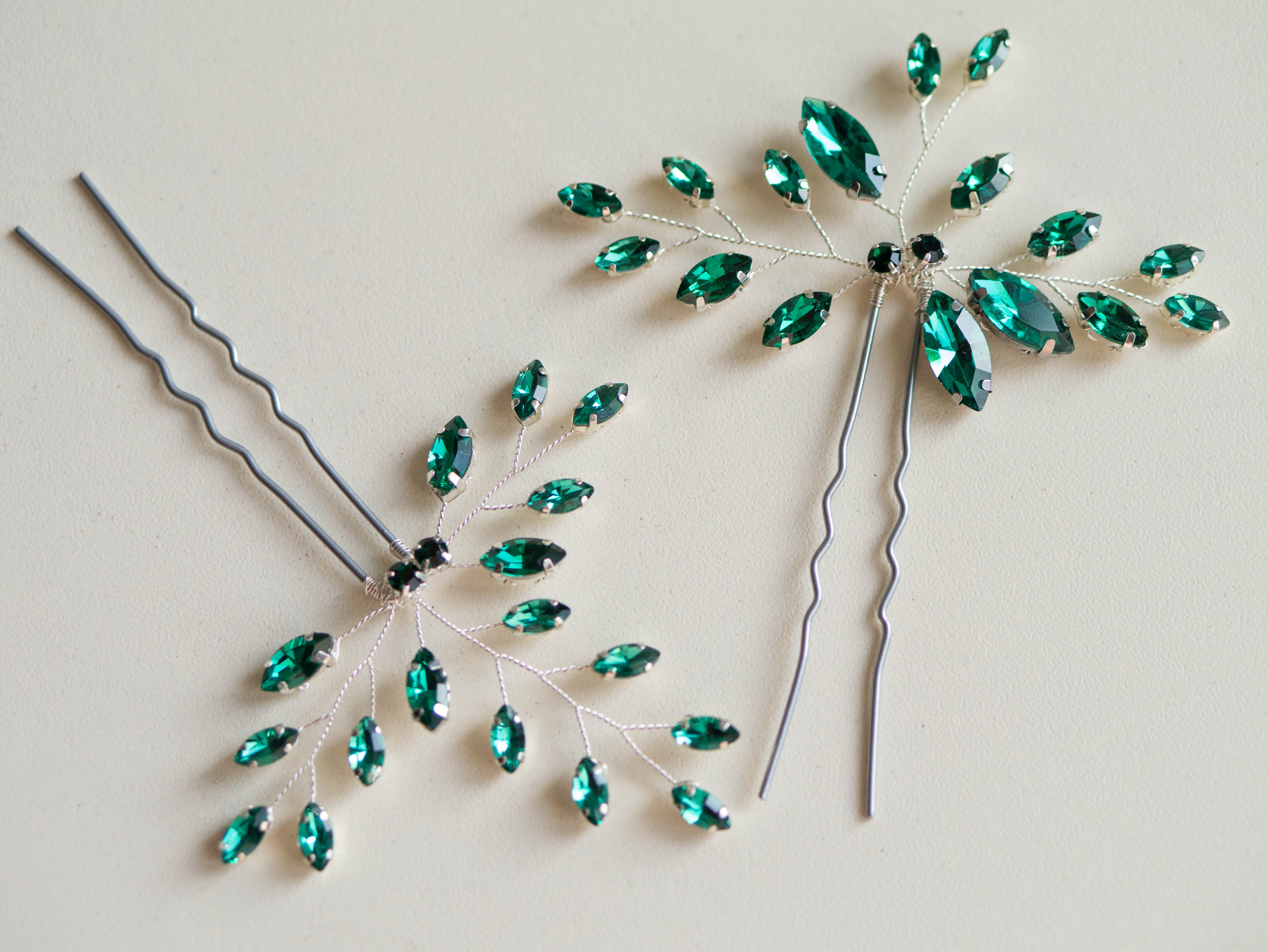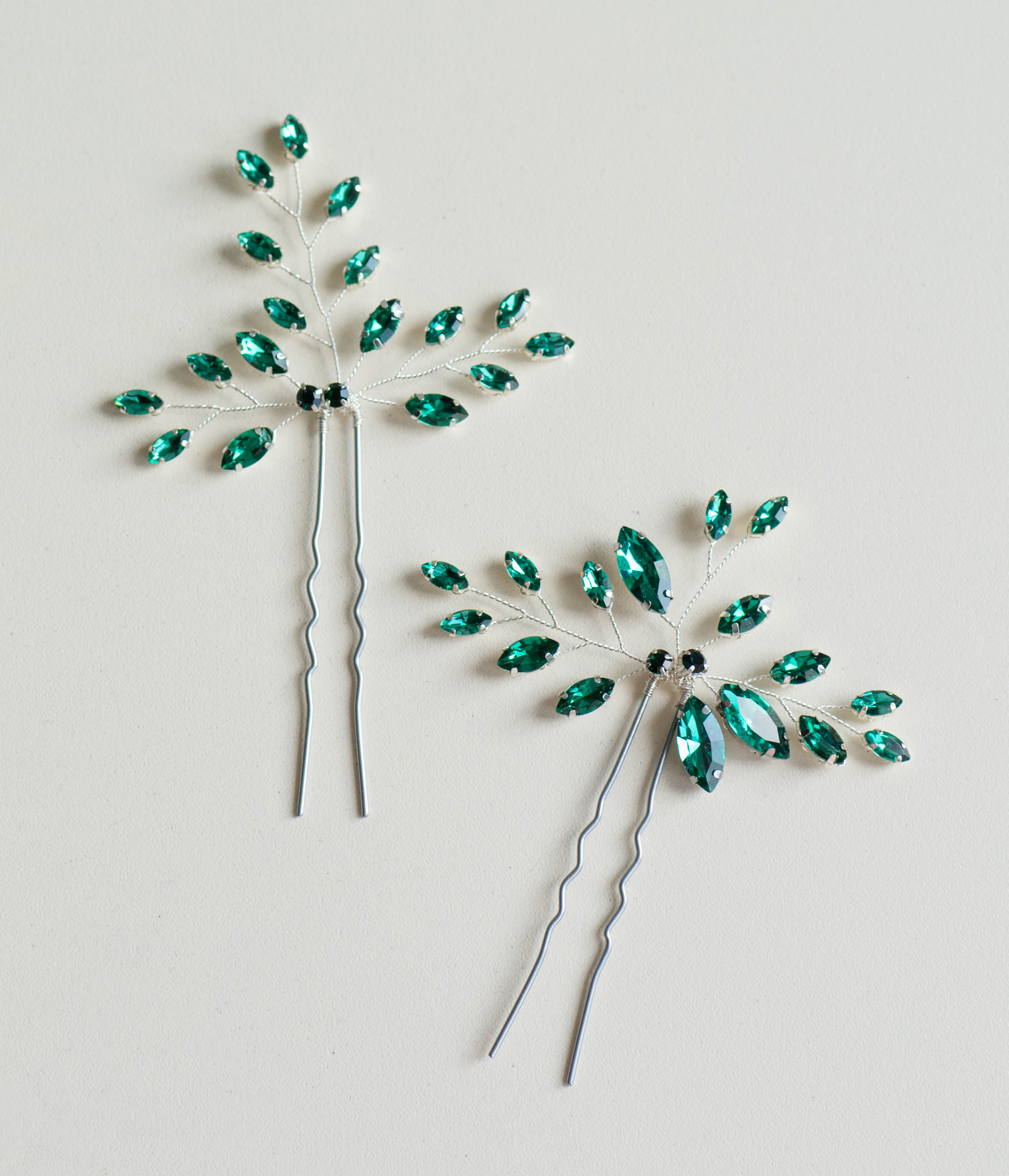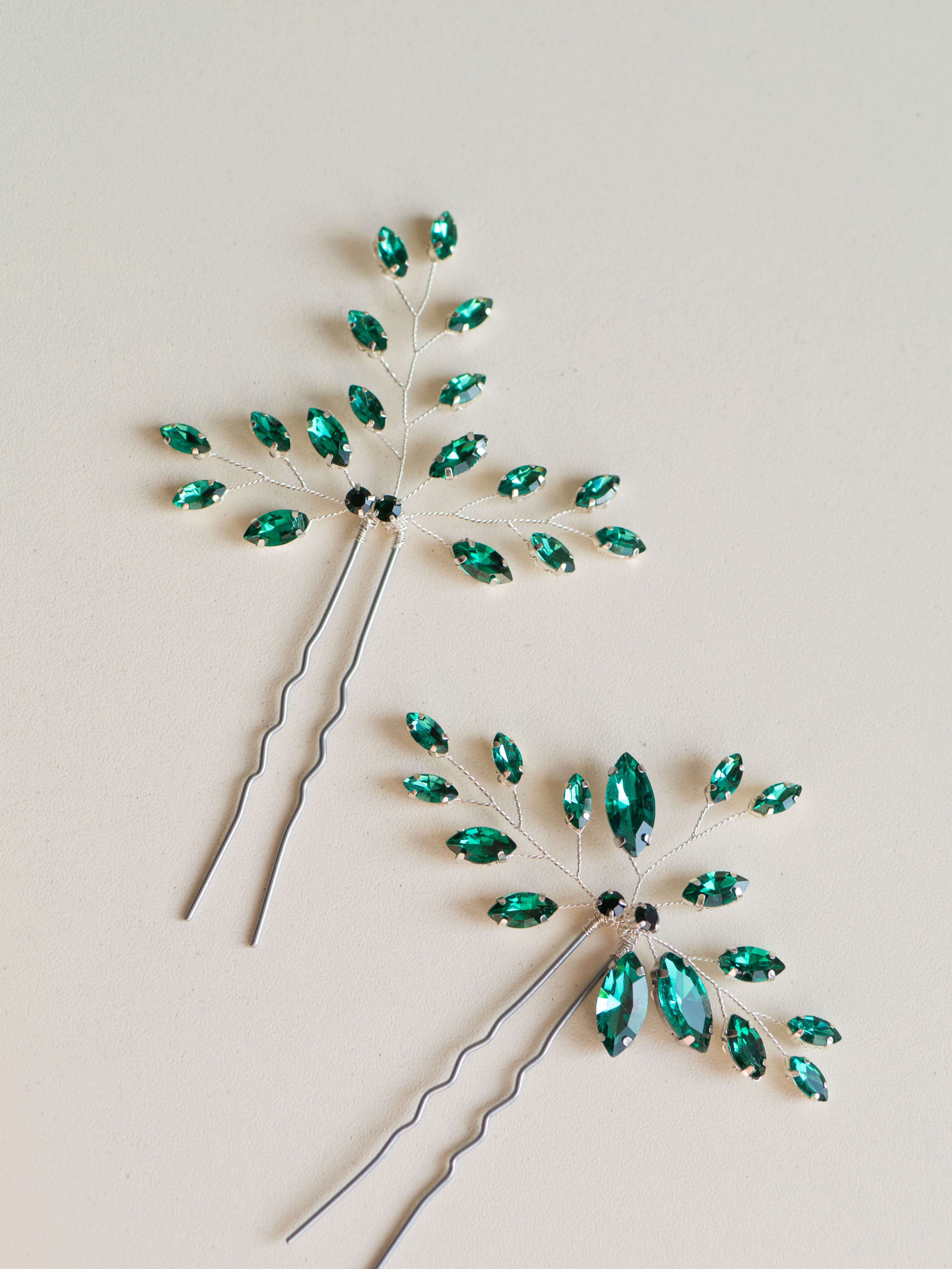 "Emerald Mia" - wsuwki do włosów z kryształkami w kolorze szmaragdowym