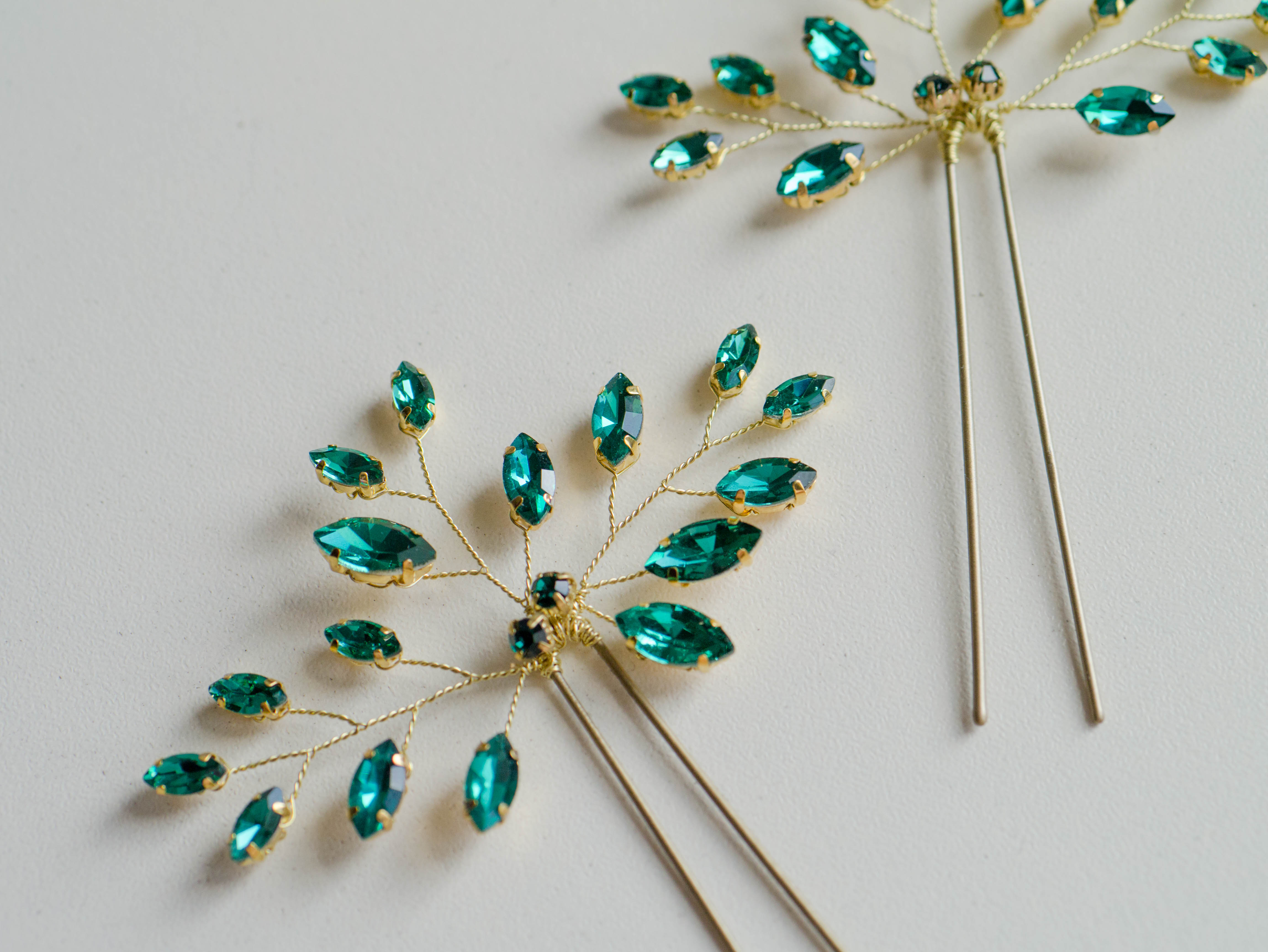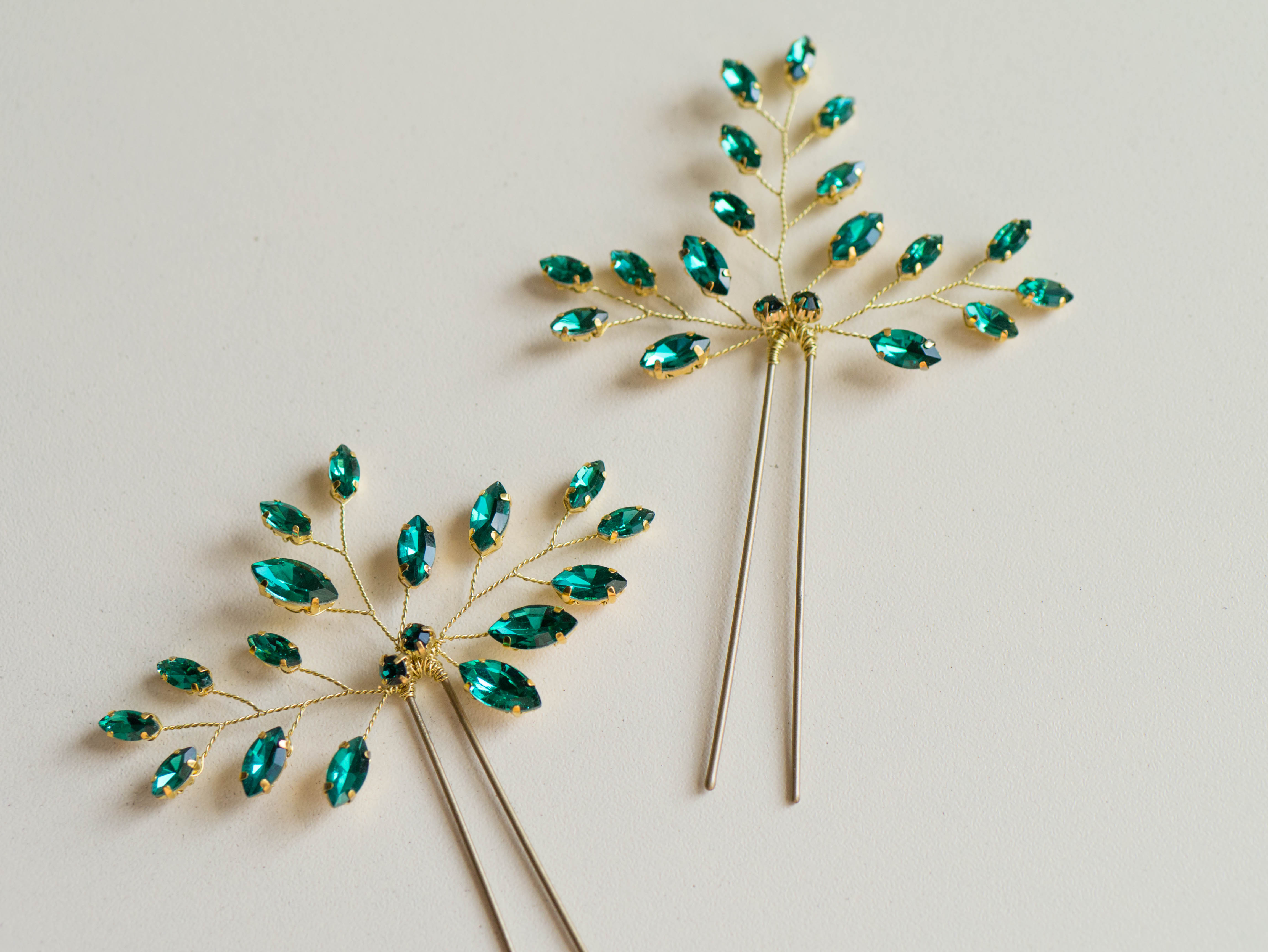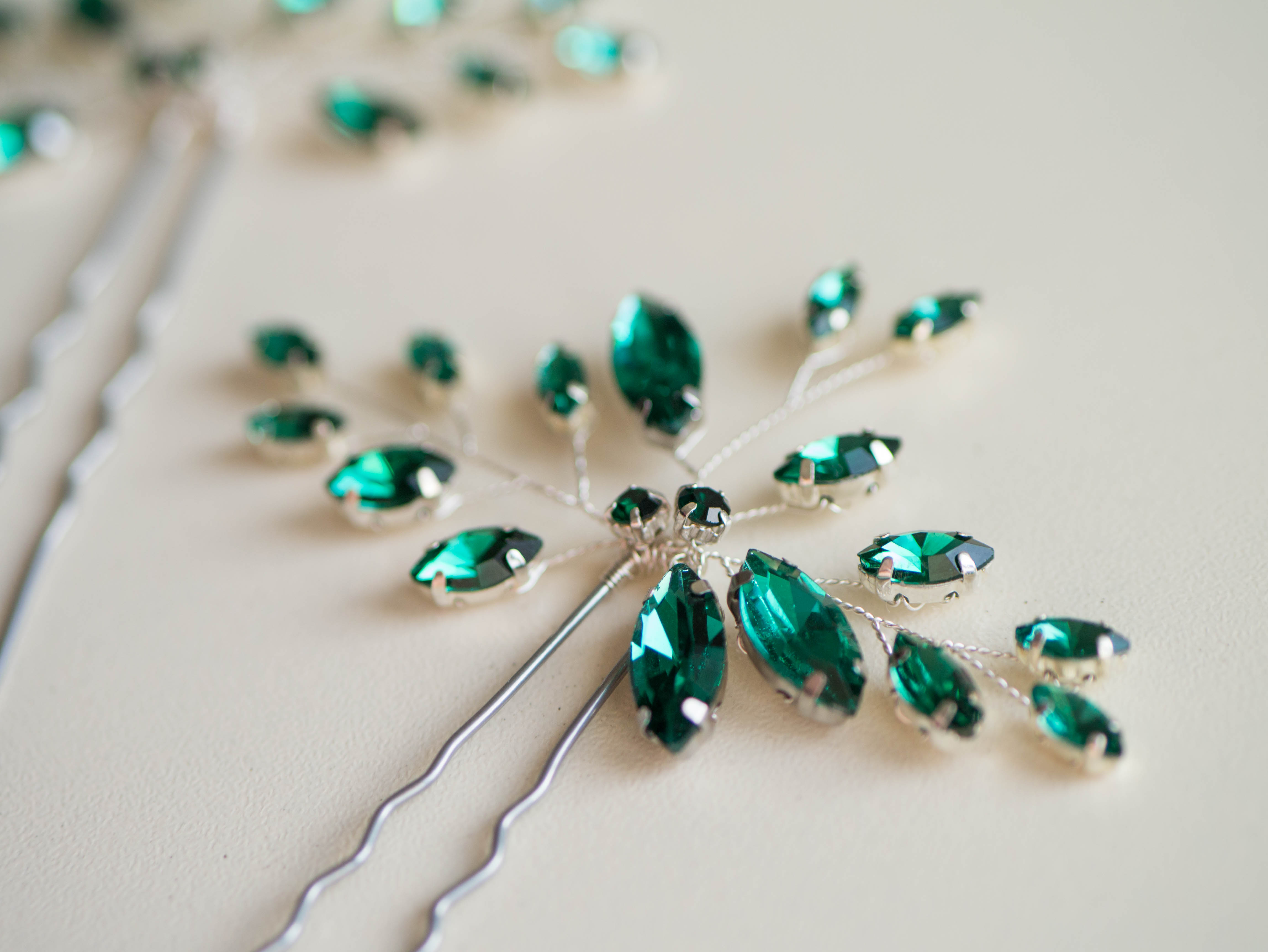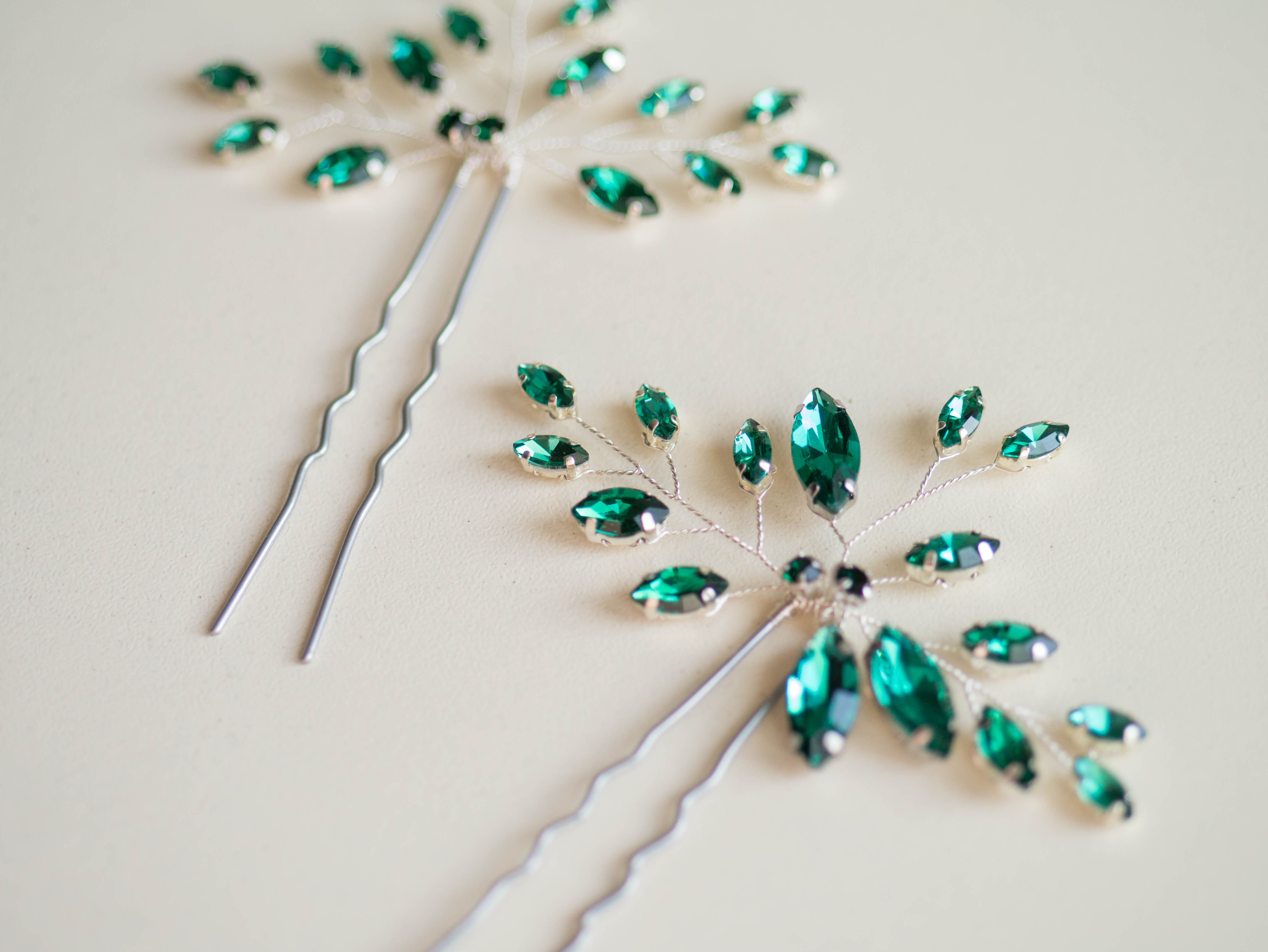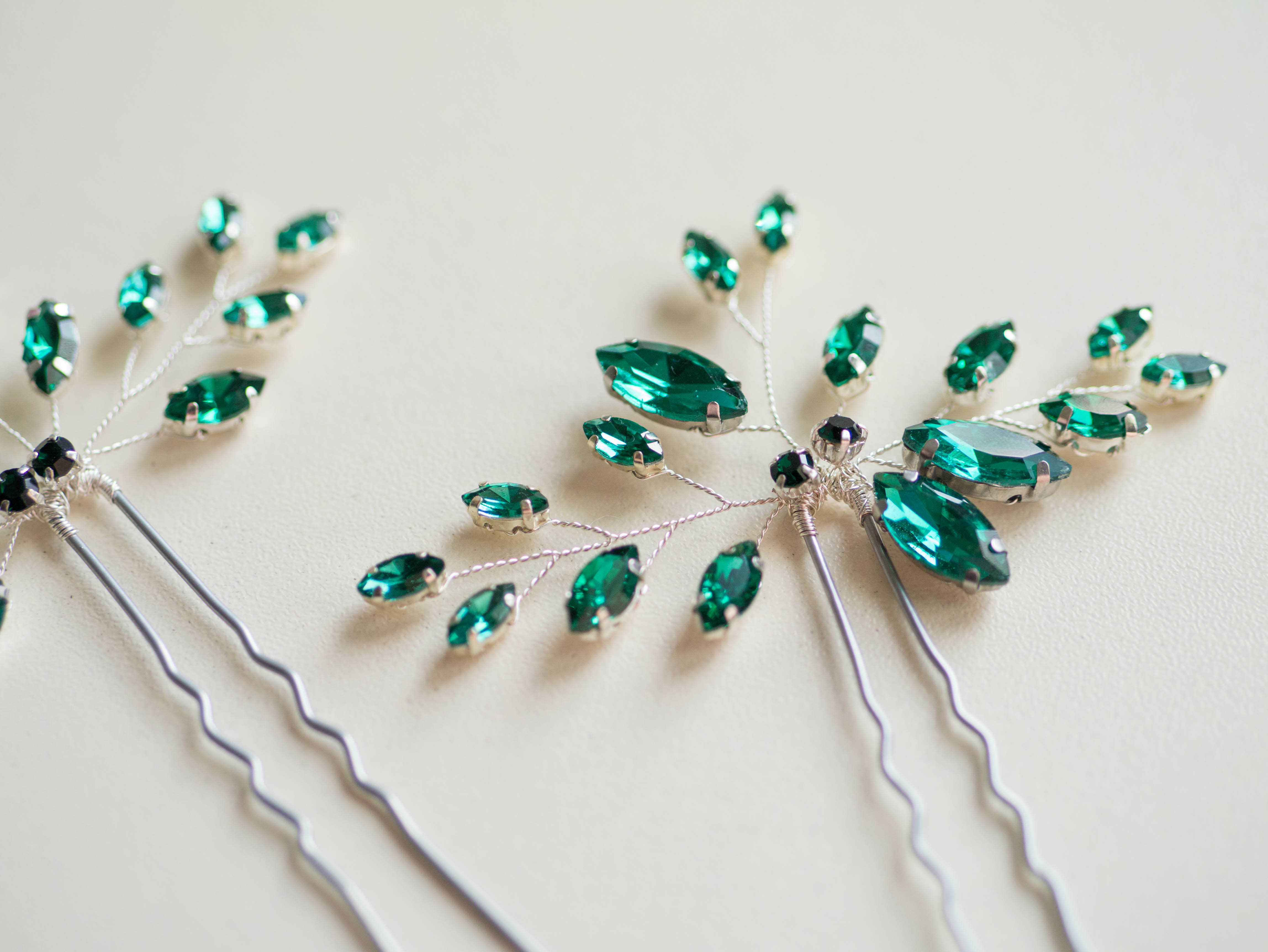 "Emerald Mia" - wsuwki do włosów z kryształkami w kolorze szmaragdowym