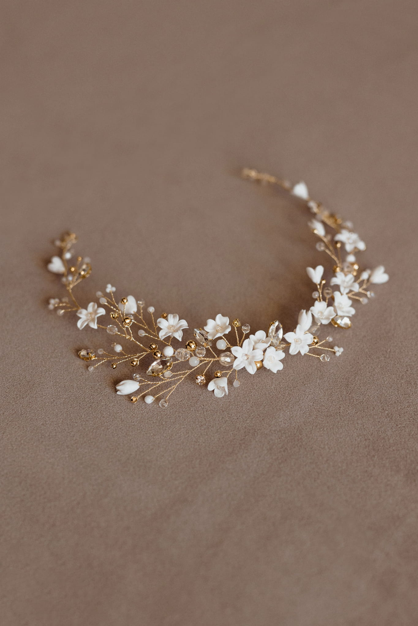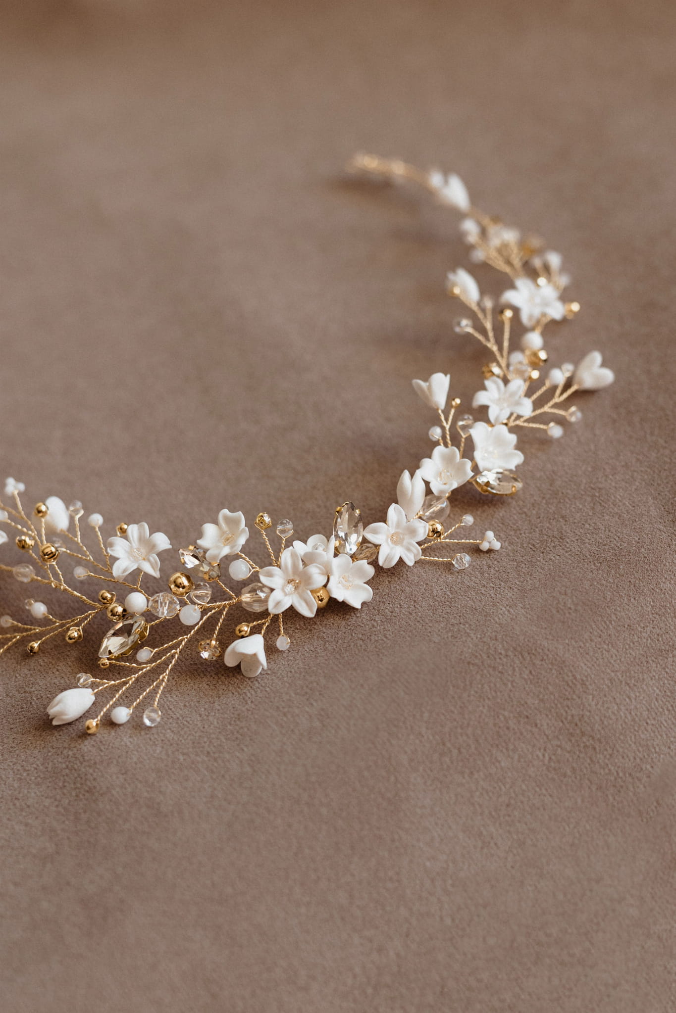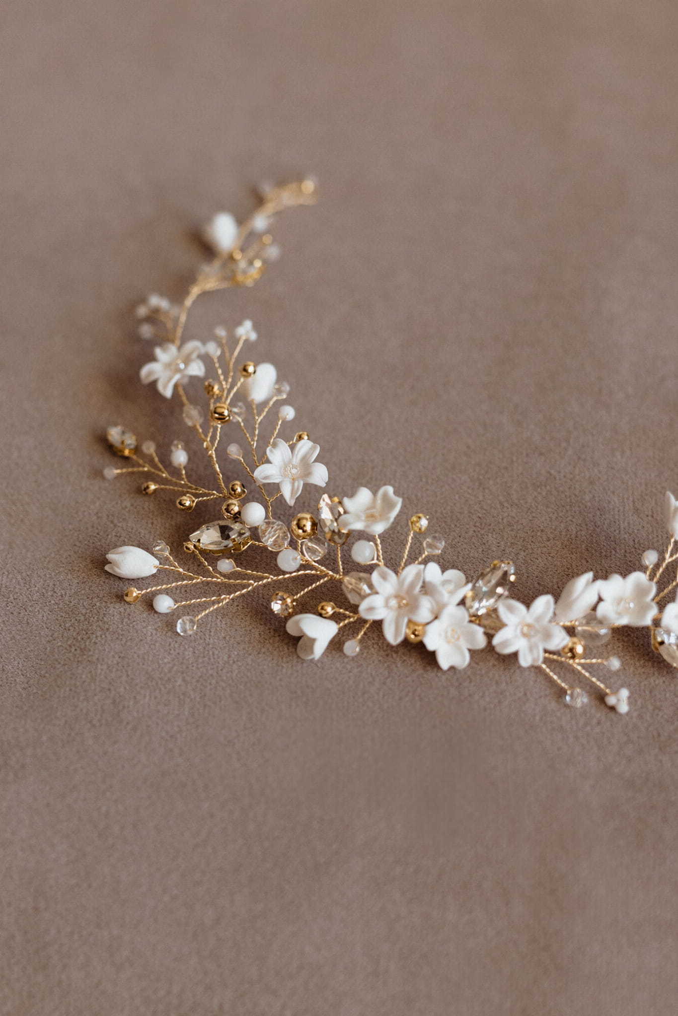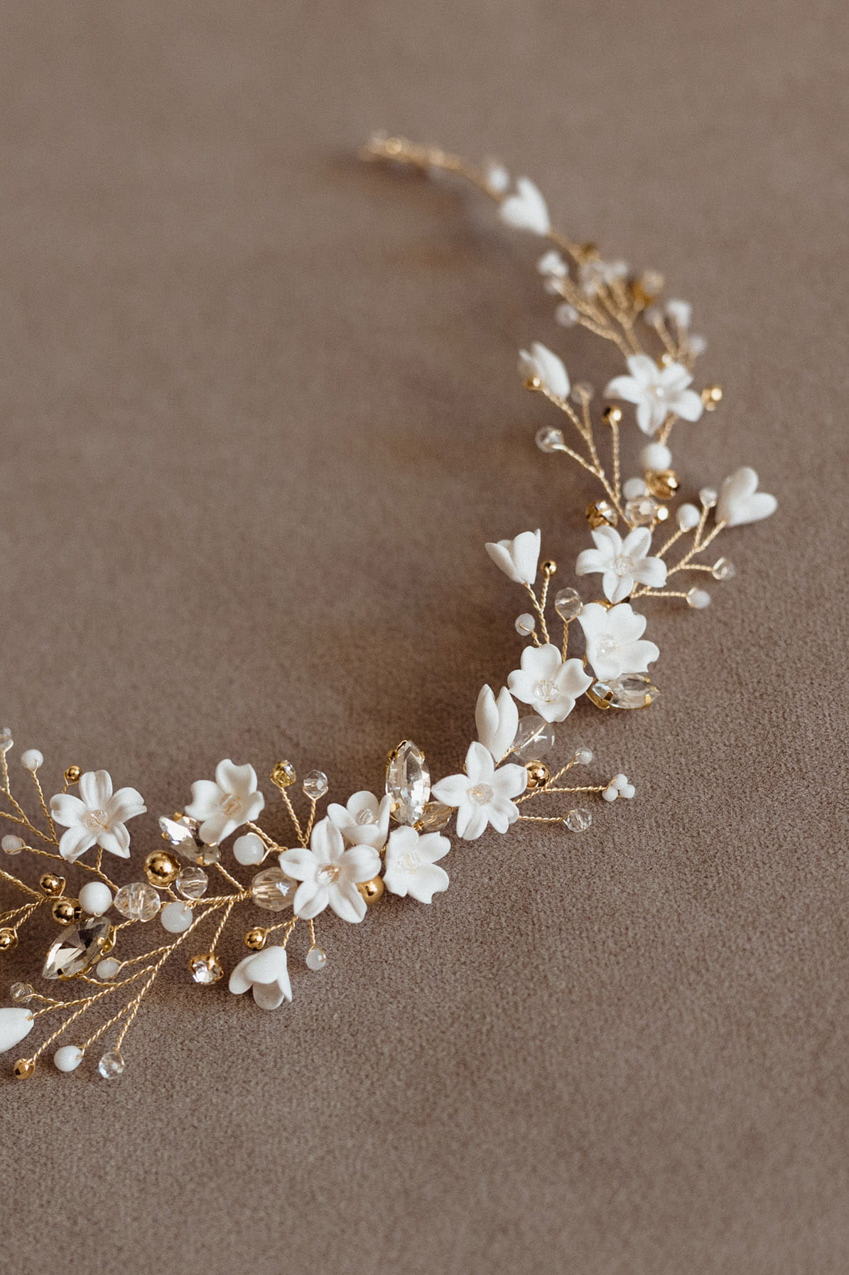 "Florentyna" - ślubna ozdoba do włosów z kwiatkami i kryształkami