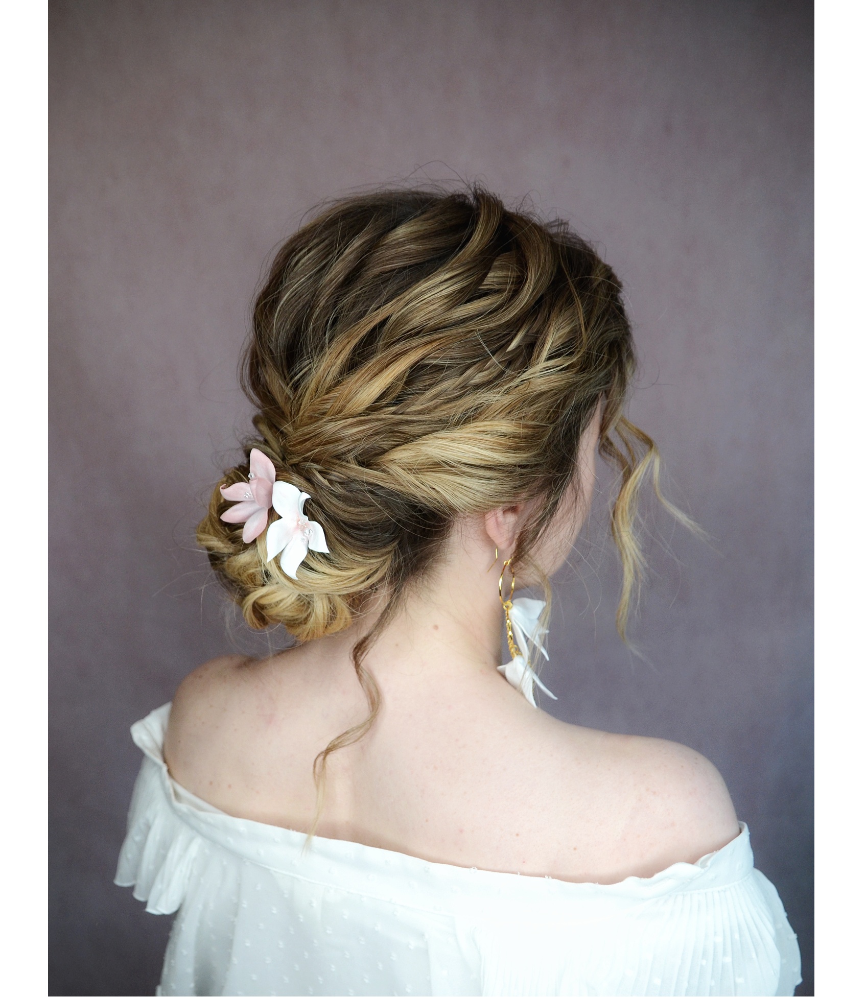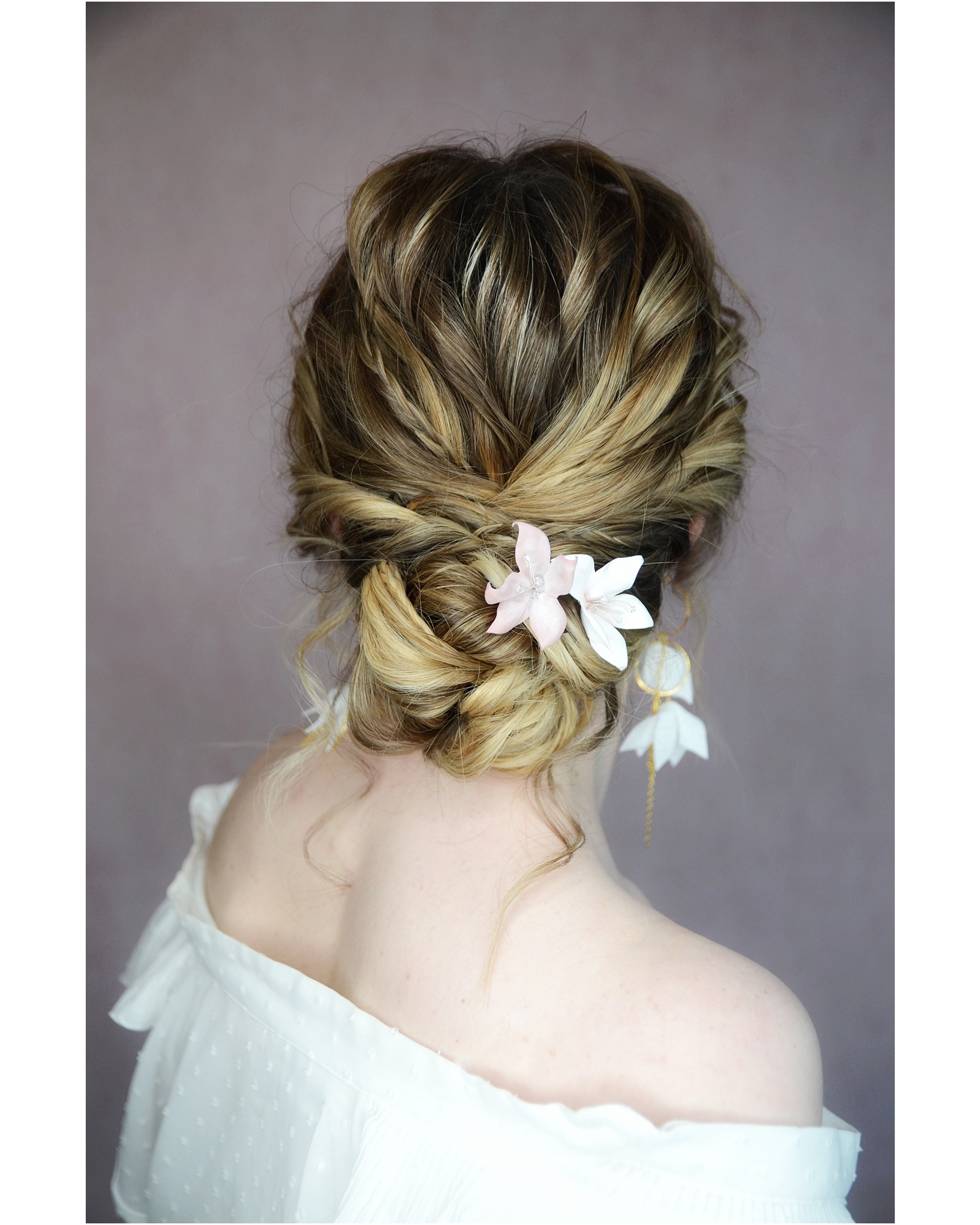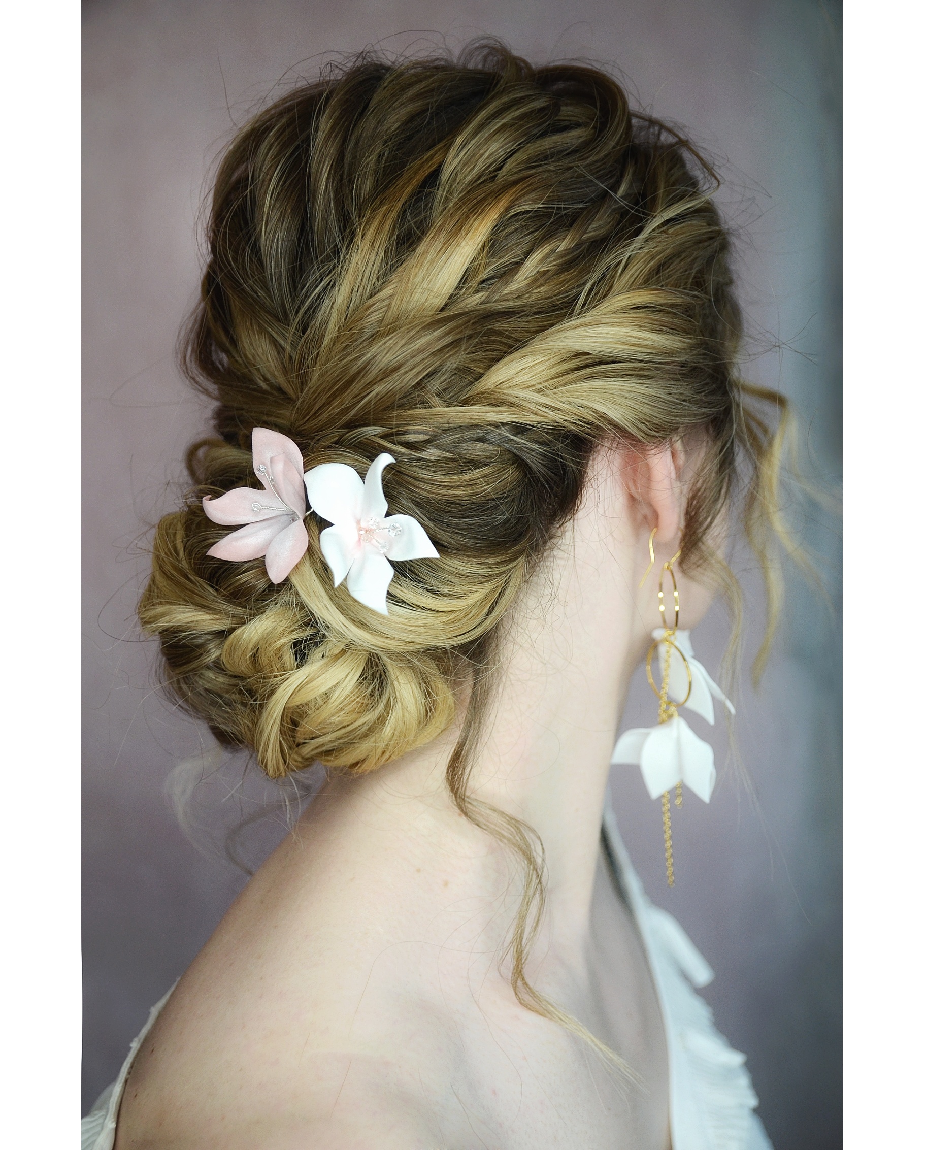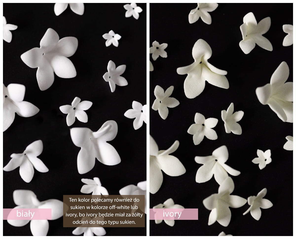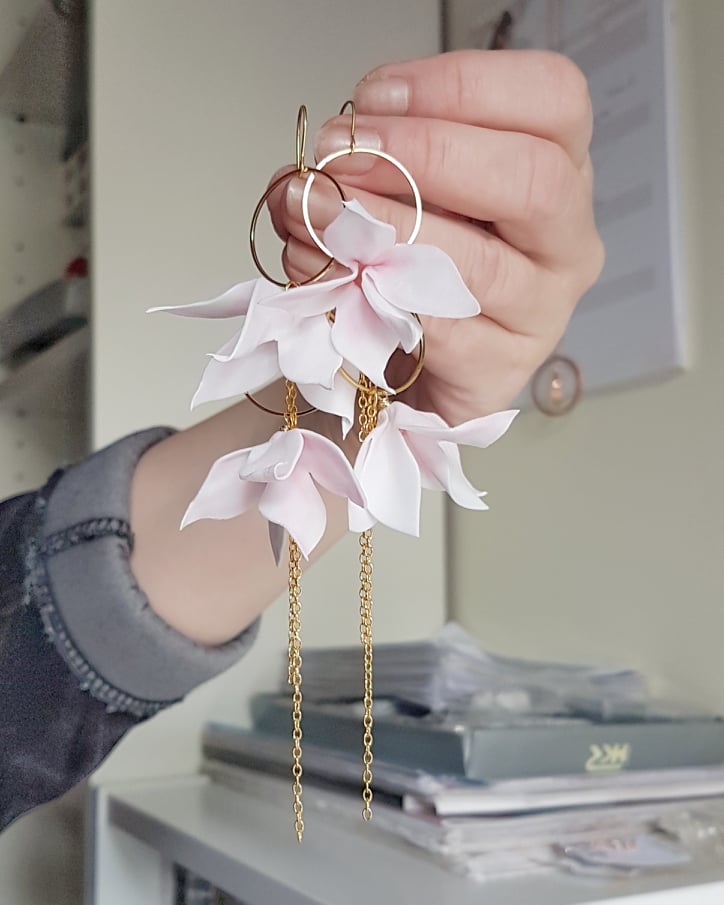 Kobiece i zmysłowe, inspirowane naturą przepiękne kolczyki ślubne. Idealnie podkreślą styl minimalistycznych sukien, dodając im subtelnej delikatności i zwiewności. Kwiaty, stworzone z białej termoplastycznej pianki, ręcznie modelowanej, które nie ulegają odkształcaniu i są wodoodporne. Pozostałe półfabrykaty są w odcieniu złota.