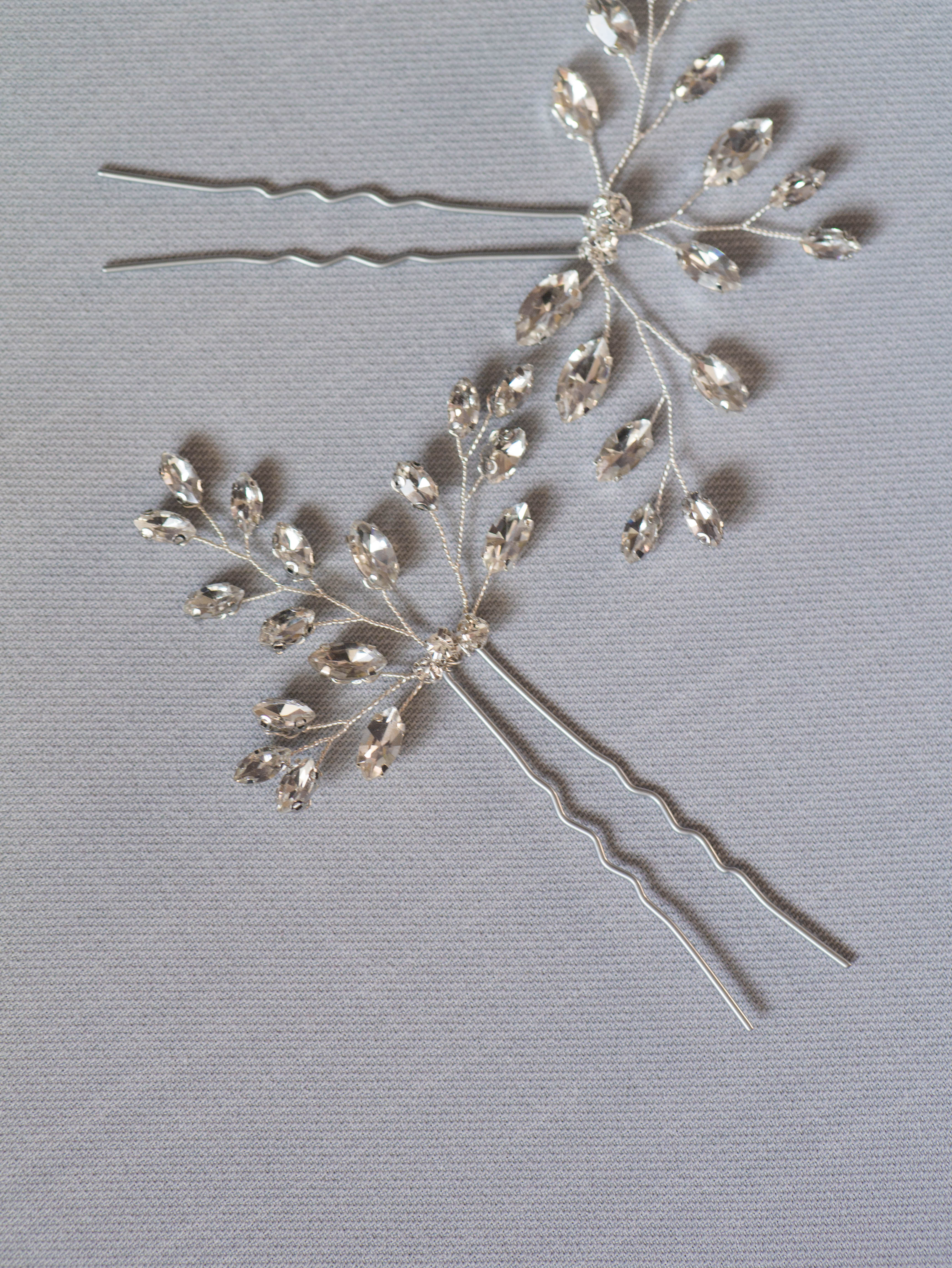 "Mia" - srebrne kokówki do włosów z kryształkami