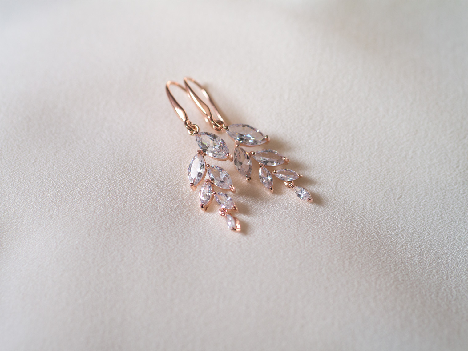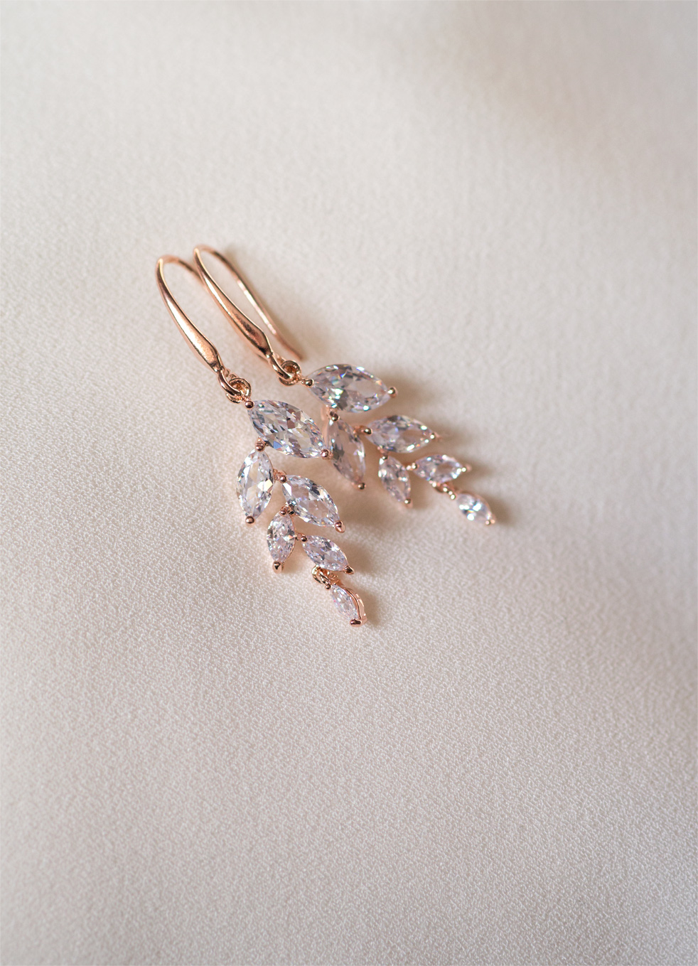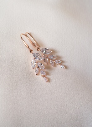 "Rose Gold Leafi" - ślubne kolczyki z kryształkami